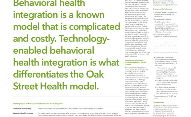 August 25, 2021Poster 19 – Oak Street Health Behavioral Health Program through COVID As of 2019 1 in 5 Americans were living with mental health disorder. We know that only ⅔ of those individuals received treatment (WHO report). Yet, in